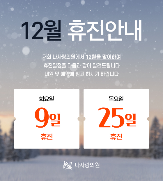 ① “나사랑의원”이(가) 작성한 저작물에 대한 저작권 기타 지적재산권은 “나사랑의원”에 귀속합니다.